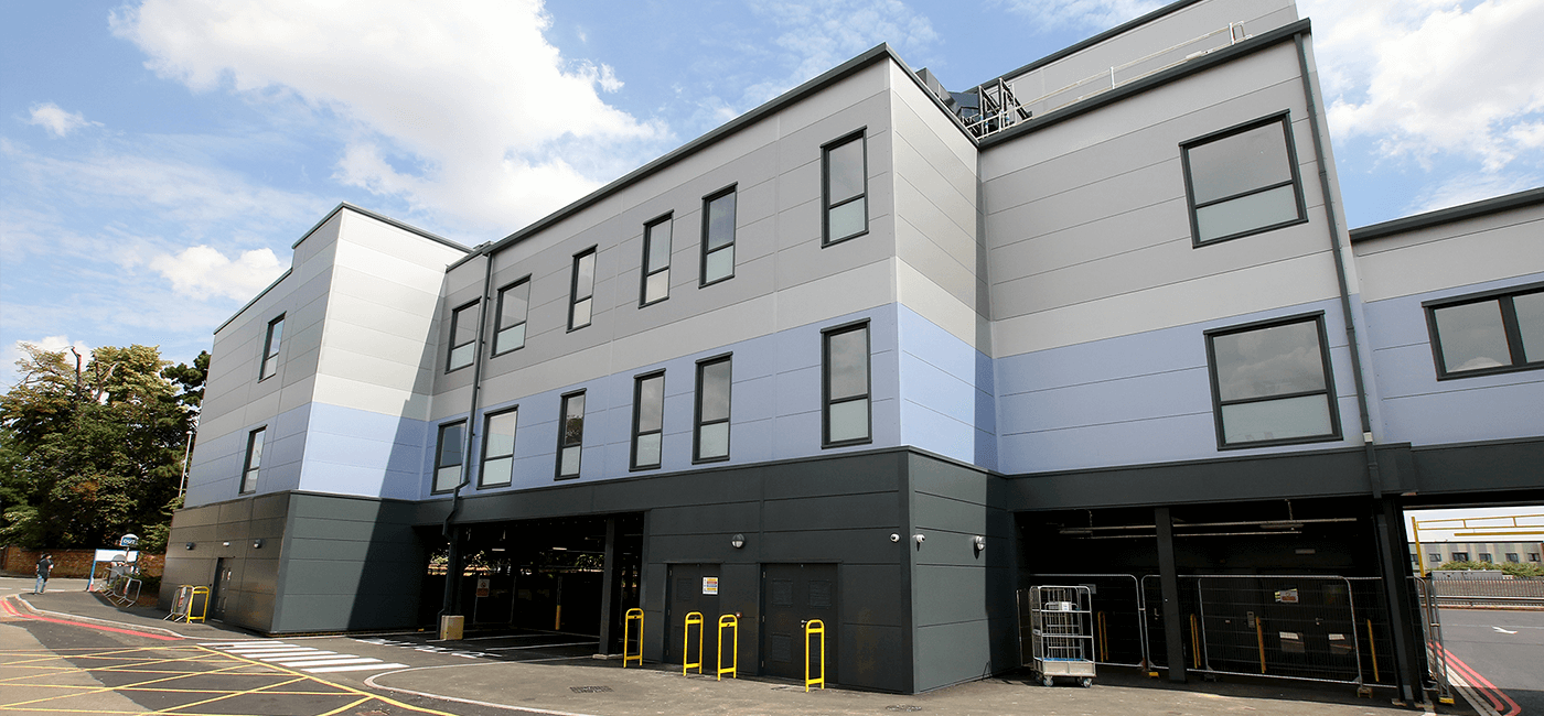 The works involved piled foundations between live buildings and around the extensive live underground services, plus building directly over the top of the hospitals main IT suite, main corridor, restaurant and main access road. Ground penetrating underground mapping surveys proved very valuable throughout the groundworks. The building was constructed using a steel frame with a mixture of Metalrib decking and precast concrete hollowcore units and stairs. The walls were microrib and rainscreen clad, whilst the roofs were single ply.